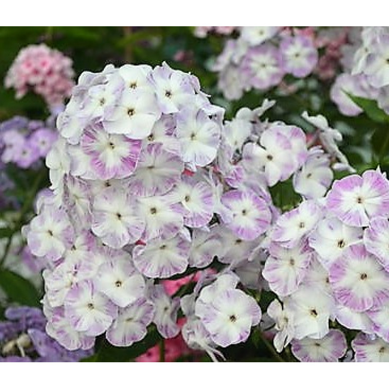 Флокс метельчатый герман - это изысканное растение с тонкими стеблями, достигающими высоты до 80-90 см. Его листья весной радуют светло-зеленой окраской, а летом цветет белыми цветками с фиолетовыми тенями диаметром от 3,5 до 4,5 см. Этот сорт флокса обладает высокой морозостойкостью и прекрасно растет как на солнце, так и в полутени. Рекомендуется для групповых посадок, миксбордеров или одиночных посадок в плодородных почвах.